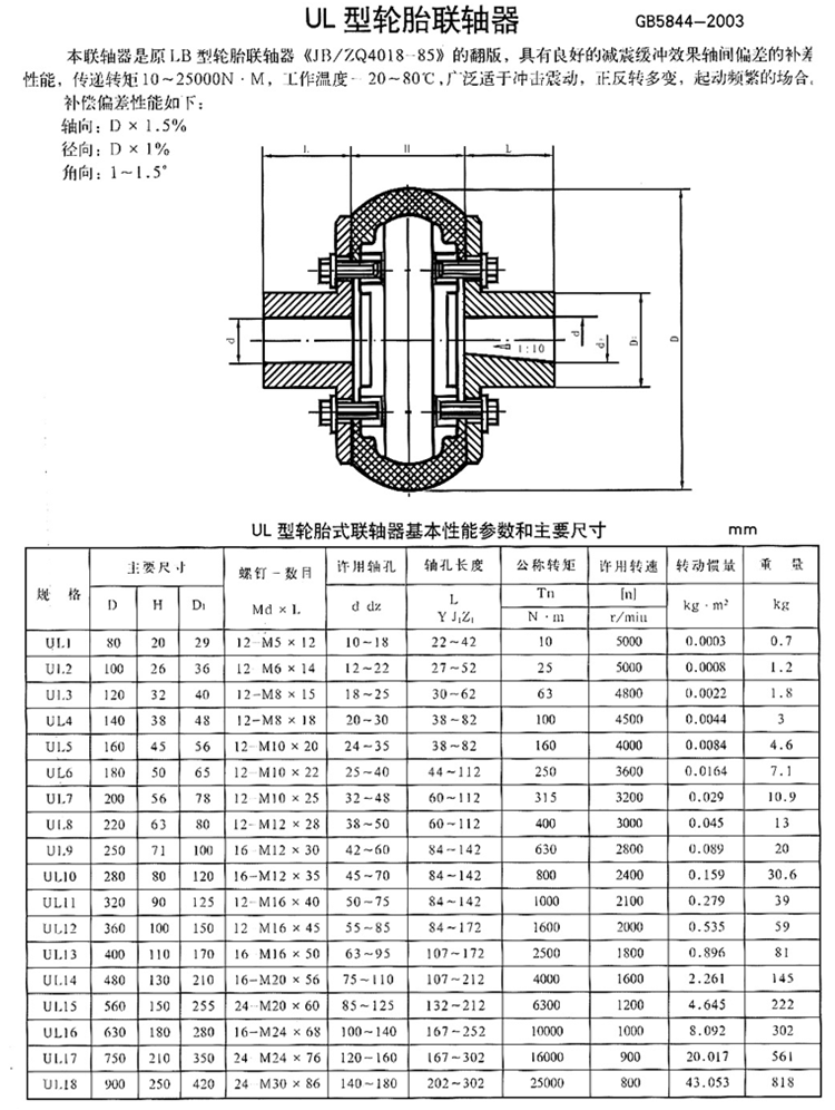 UL型轮胎式联轴器